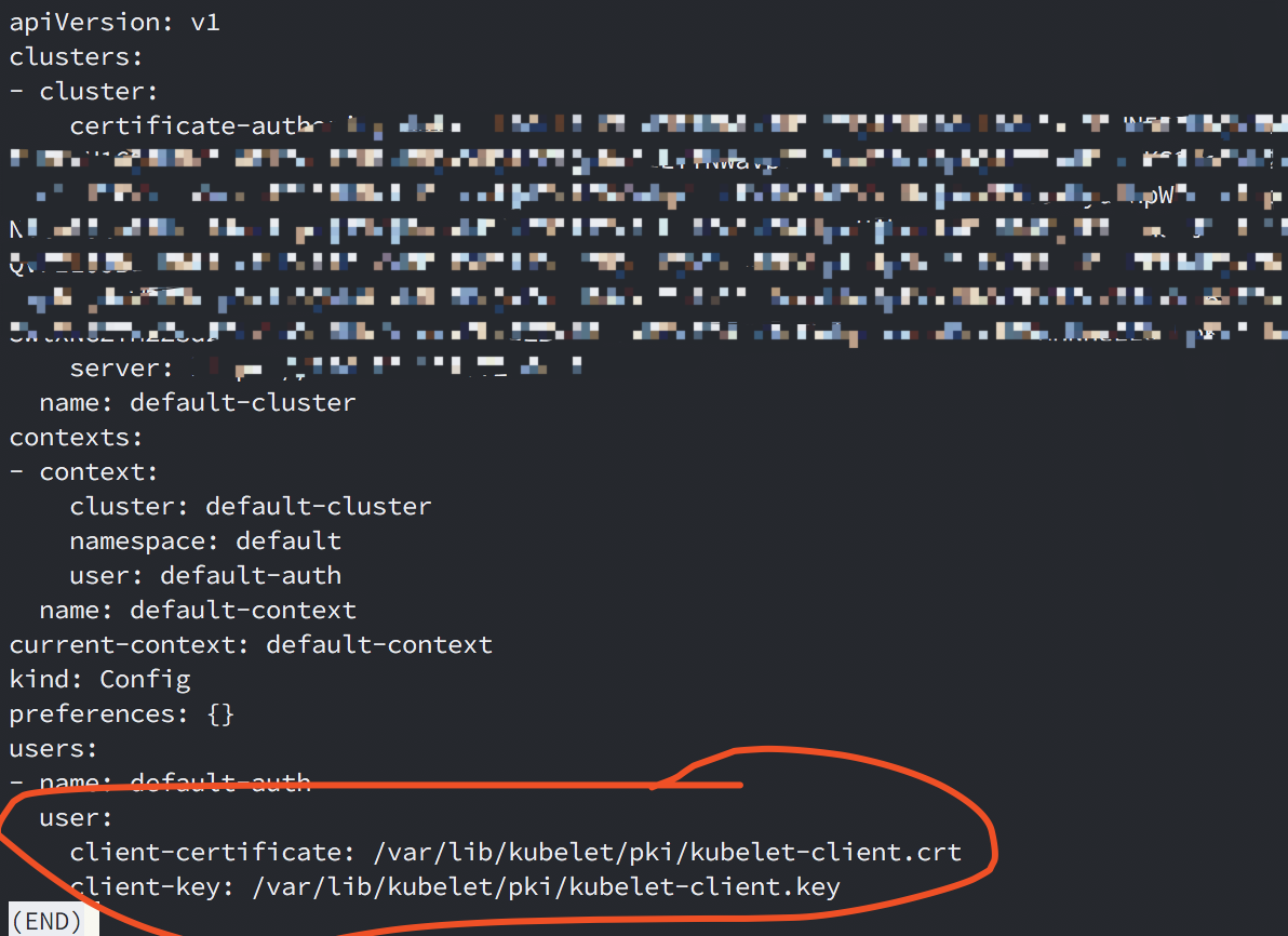 红线部分就是 Node 鉴权的信息,基于这个确认 node 的身份。另外一个是 Role Based Access Control,那个主要是配给 pod,限制 pod 行为用的,类似于 linux 的 chmod。