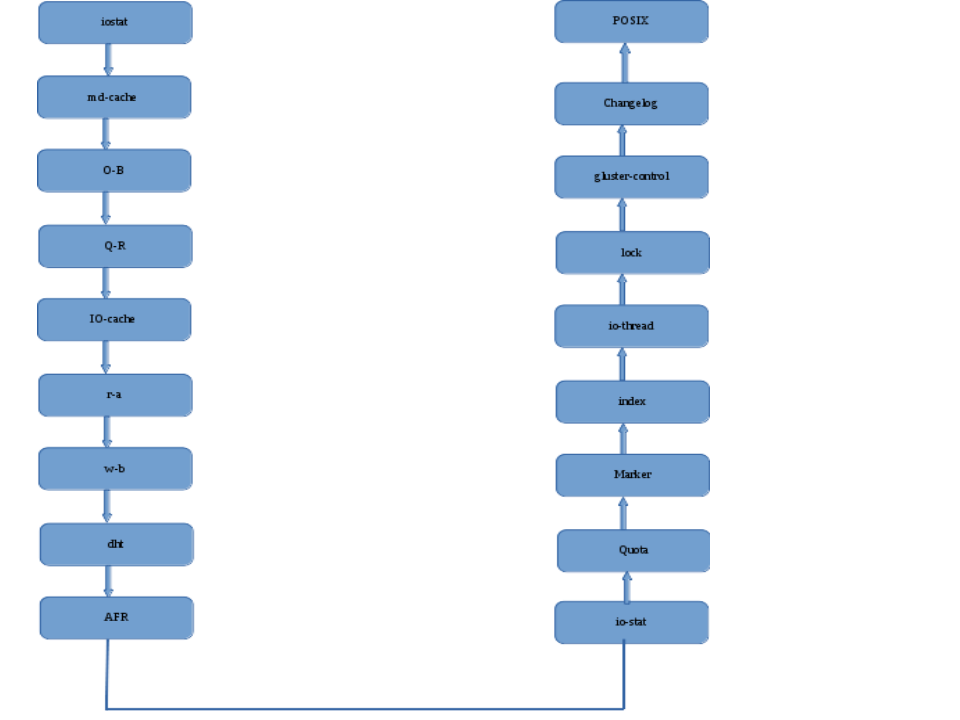 glusterfsd 最开始是 protocol/server 最后是 storage/posix 两个 xlator 作为开头和结束。